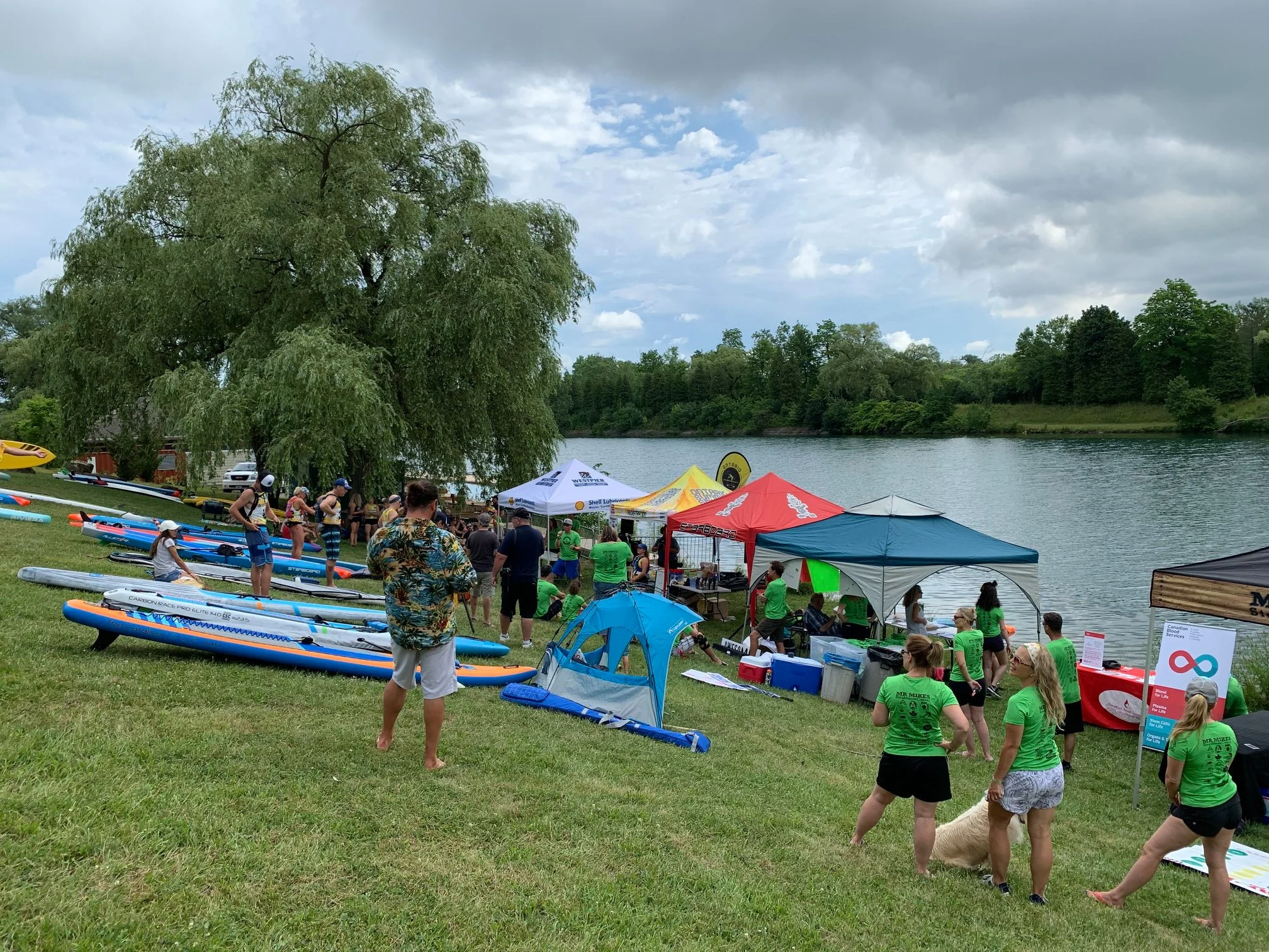 I woke up around 5:30am and we got to the canal around 8:00am for set up. Paddlers began arriving right away, and boy oh boy was it ever a big turnout. I greeted everyone coming in like I always do, and was completely blown away at everyone who came. Surf the Greats missed last year, so I was so over the moon happy to see them there again this year when they all arrived skating down the Canal path on their carver skateboards.